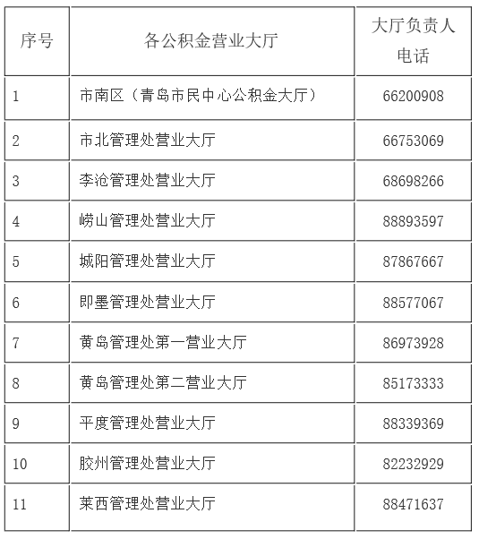 代辦!!收藏!青島公積金公布各管理處營業(yè)廳負(fù)責(zé)人辦公電話