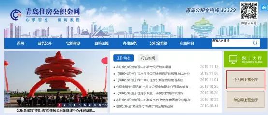 登錄青島住房公積金官網(wǎng)【點(diǎn)擊進(jìn)入】,進(jìn)入個(gè)人網(wǎng)上營業(yè)廳頁面的網(wǎng)上大廳