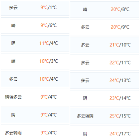 △12月8日至15日,青島與南寧氣溫對(duì)比。左邊是青島,右邊是南寧。來源:中國天氣網(wǎng)