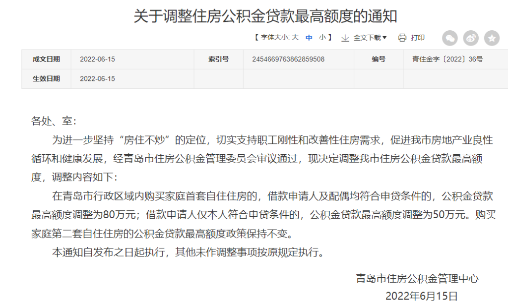 代提?。?0萬元!青島調整住房公積金貸款最高額度