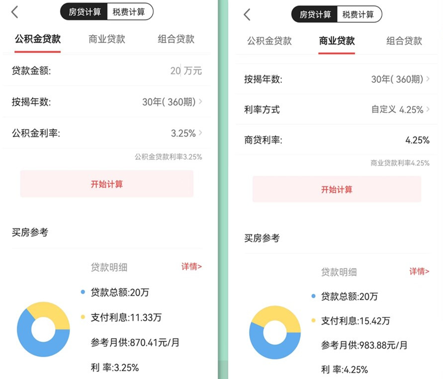 公積金利率3.25:貸款20W,30年,月供870.41元,總利息11.33萬