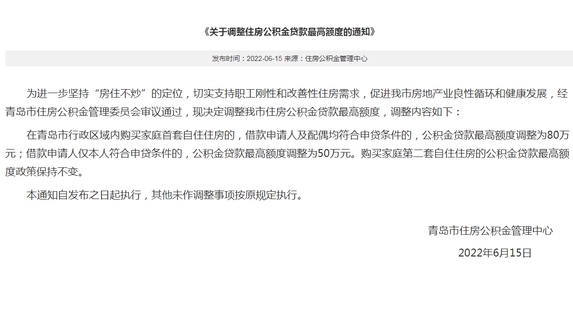 前幾天有傳聞,今日正式實錘,青島公積金貸款上限做出調整,單人為50W封頂,夫妻80W封頂。要求必須是第一套房,比以前高很多。下圖為原文件