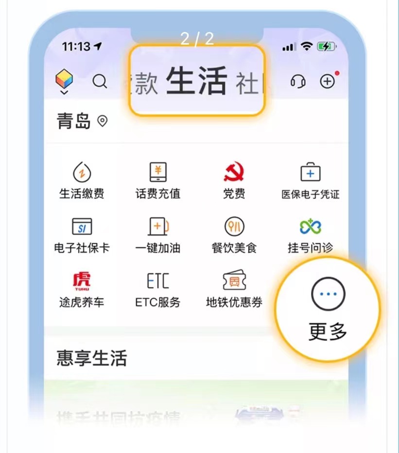 第一步:登錄交通銀行手機銀行APP,選擇“生活”版塊,點擊“更多”。